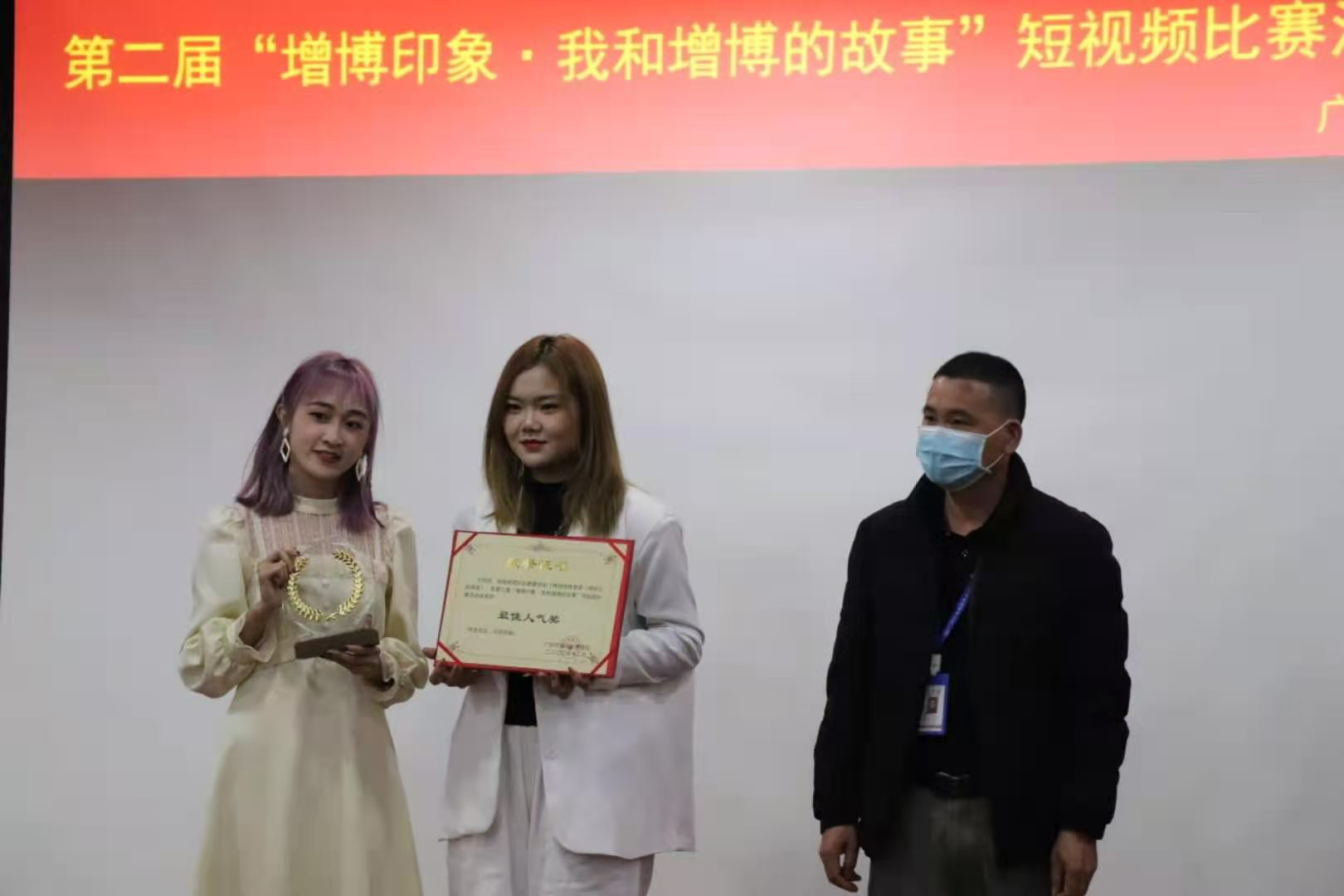 本网讯2020年12月8日下午15点,“增博印象·我和增博的故事”第二届短视频比赛颁奖典礼于增城城市馆内举行,莅临本次颁奖典礼的领导和嘉宾有广东财经大学华商学院传播与传媒学院副院长林绍忠,增城博物馆党支部书记、副馆长郭烨明,视频传播系系主任程海涛,视频传播系系主任助理周合强,新闻系专任教师陈嘉玲。