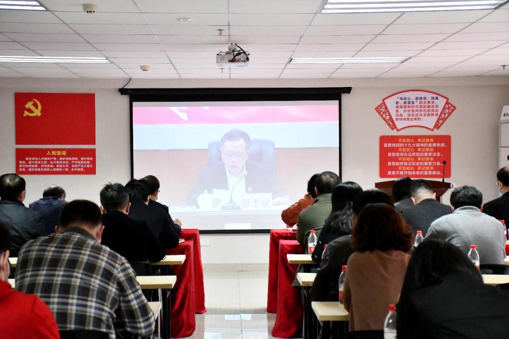 我校学校党政领导班子成员,职能部门(处室)负责同志,二级学院(系)党组织负责人在行政楼502会议室以视频会议方式同步参加会议。