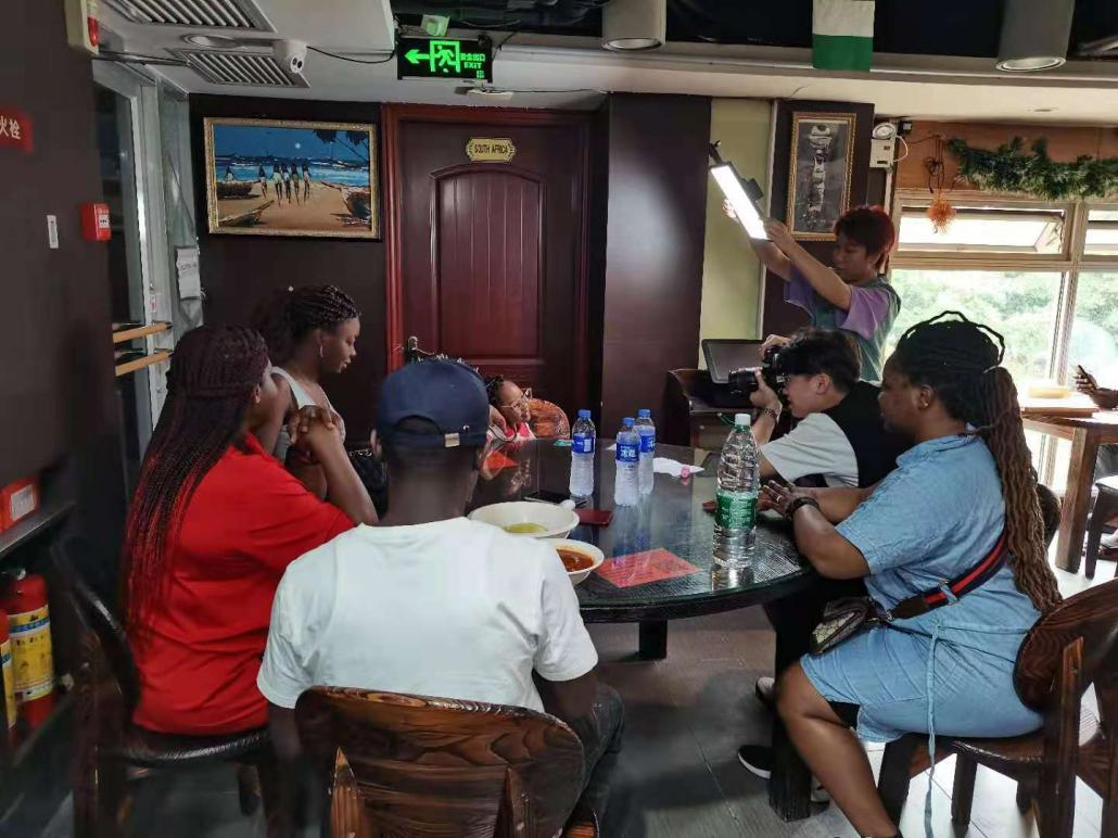 在拍摄中场休息时,《你好,非洲》摄制组的编导贺云老师热心地为同学们讲解短片拍摄和制作流程以及分享拍摄节目的经验故事。参与学习的陈同学表示,通过这次观摩学习,对电视节目制作有了进一步认识,这堂走出校园的“实践课”,真正感受到书本上的知识“活起来”了。比如,如何进行机位架设、灯光布置、访谈提问等等,这是一场次生动的电视节目拍摄实战教学。2017级的谢婉华同学称,在大四毕业前夕,得到一次深入剧组学习的机会,十分荣幸。能近距离在现场学习,对编导、摄影等工作有了更深刻的理解。