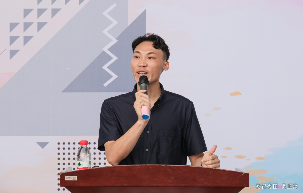 商品设计系副主任张宪法老师作为教师代表发言,他表示创意与设计学院的师生为本次毕业展竭尽心力,学校领导也做了很多支撑性的工作,各方共同的努力才让本次的毕业设计展得以精彩呈现。设计作品展现出学生对艺术新形式的尝试、对设计理念的理解,同时勉励同学们毕业后发挥才能设计出更多的优秀作品。