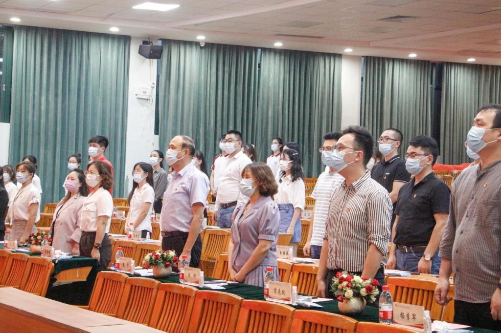 大会在诗朗诵《诵读中国》中拉开帷幕,校广播台学子们深情朗诵,让在场嘉宾仿佛回到党那些年激情燃烧的岁月。随后,全体人员起立迎国旗奏唱国歌及团歌,并观看华商师生献礼建党百年宣传视频片;与会领导、嘉宾为获奖集体、同学代表颁奖。