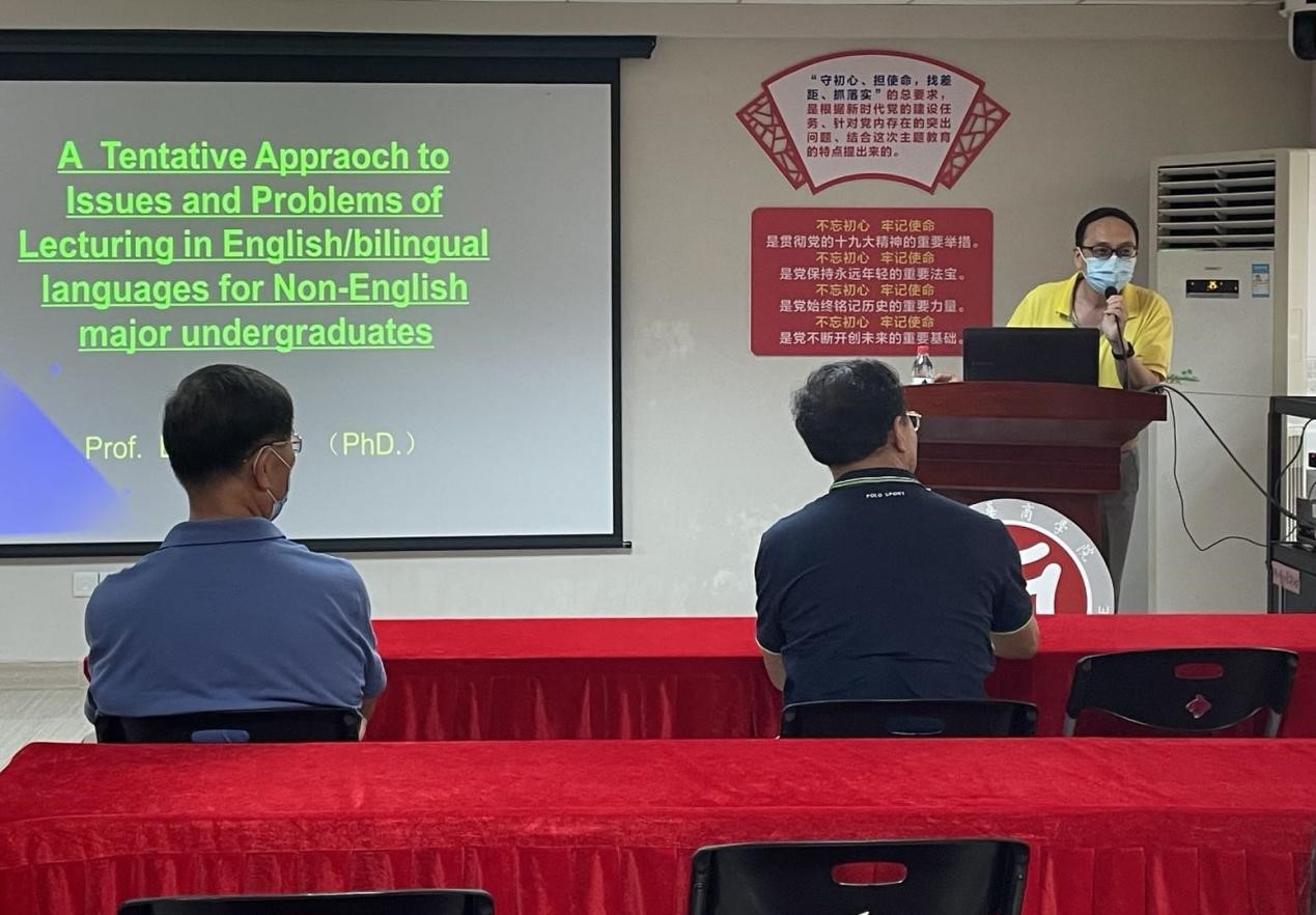 6月22日,我校双语、全英教师培训系列讲座第三讲于行政楼502室举行。本次讲座由3044永利集团登录副院长黎平海教授主讲,钟森文副校长出席讲座,国际交流与合作处王文忠处长主持讲座。