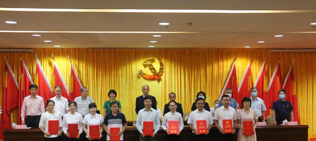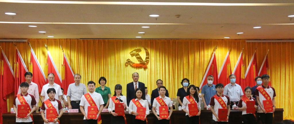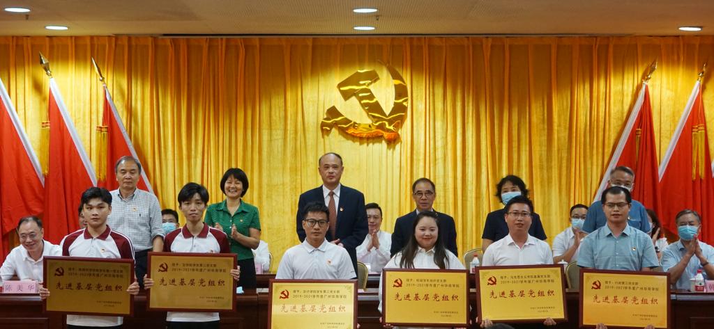 王锦秀同志宣读表彰决定,中共广东省委教育工委、中共广东省教育厅党组授予黄国富、吕书勉两名同志“优秀共产党员”、“优秀党务工作者”称号,中共广东省教育工委授予王国庆同志2020年度“学习强国”广东学习平台高校通讯站学习积极分子称号,我校授予彭强等126名同志为“优秀共产党员”,杨阳等12名同志为“优秀党务工作者”,行政第三党支部等6个基层组织为“先进基层党组织”,朱芳芳等20名同志为“学习标兵”。