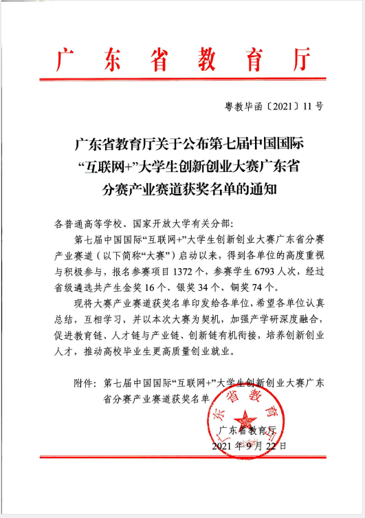 近日,广东省教育厅公布的第七届中国国际“互联网+”大学生创新创业大赛广东省分赛产业命题赛道获奖名单中,3044永利集团登录《数字经济创新商业模式设计》项目获省赛银奖,《AI+ 智慧交通—— 城市智慧交通解决方案》和《乡村旅游直播》两个项目获省赛铜奖,获奖总数在全省民办本科高校中居于首位。