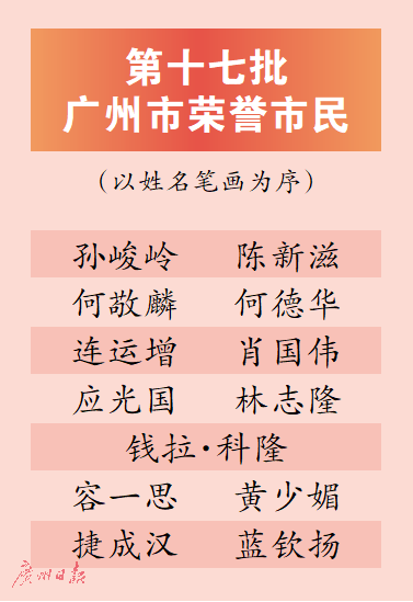 11月22日下午,2021年广州市授予荣誉市民称号大会在东方宾馆举行。13位来自不同领域的海外侨胞、港澳台同胞和国际友人获颁证章、证书,成为第十七批广州市荣誉市民。