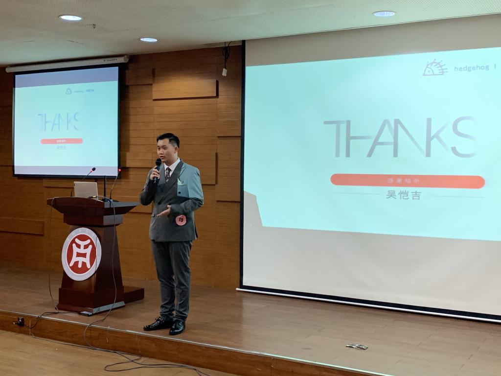 本次大赛的主题是:社区生鲜店的布局及营销方案。参赛选手依次展示了自己的策划方案,周倩同学通过关注弱势群体来展现肩负社会责任的方案。林嘉慧同学以自信、流利的英文展示了她富有魅力的方案。吴恺吉同学以品牌创始人的身份讲解了他别树一格的方案,王俊扬同学的方案切合实际并富有感染力。同学们精彩的演讲、创新的方案让评委与观众眼前一亮。嘉宾评委针对每位同学的方案提出问题,选手作答;评委对同学们的方案指出需要完善和改进之处。