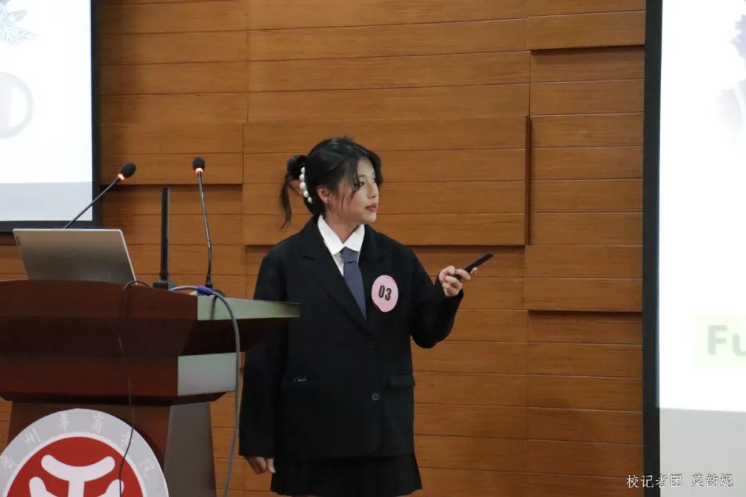 本次大赛的主题是:社区生鲜店的布局及营销方案。周倩同学通过关注弱势群体来展现肩负社会责任的方案;林嘉慧同学大方自信、从容淡定地从多个方面向大家展示了自己的营销方案;吴恺吉同学以品牌创始人的身份讲解了他别树一格的方案,并流利回答了评委提出的问题。场内反响热烈,每一位参赛选手的表现都展示出了个人特色,一份份条理清晰、独具一格的策划方案也让在场的嘉宾和观众眼前一亮。同时,嘉宾评委也对同学们的方案指出了需要完善和改进之处。