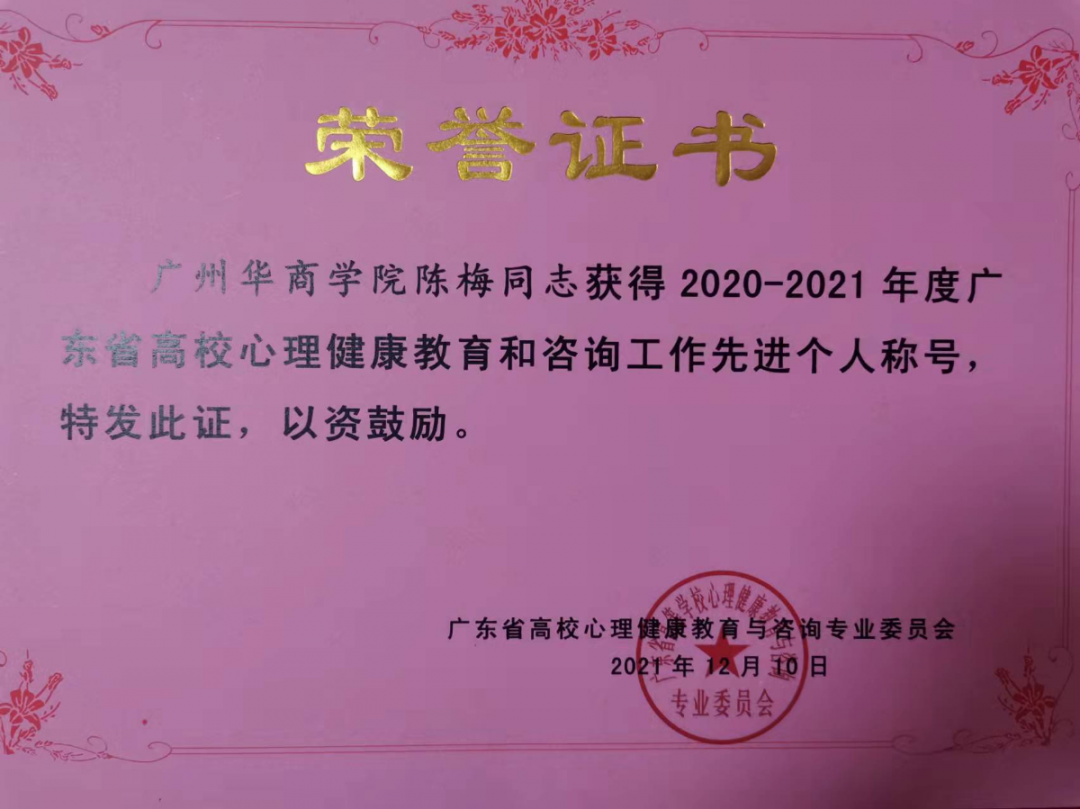 12月9-10日,2020-2021年度广东省高校心理健康教育与咨询专业委员会学术年会暨会员大会在广州举行。我校心理健康教育与辅导中心工作得到广东省教育厅、省高心委的充分认可,获得多项表彰。具体获奖情况如下: