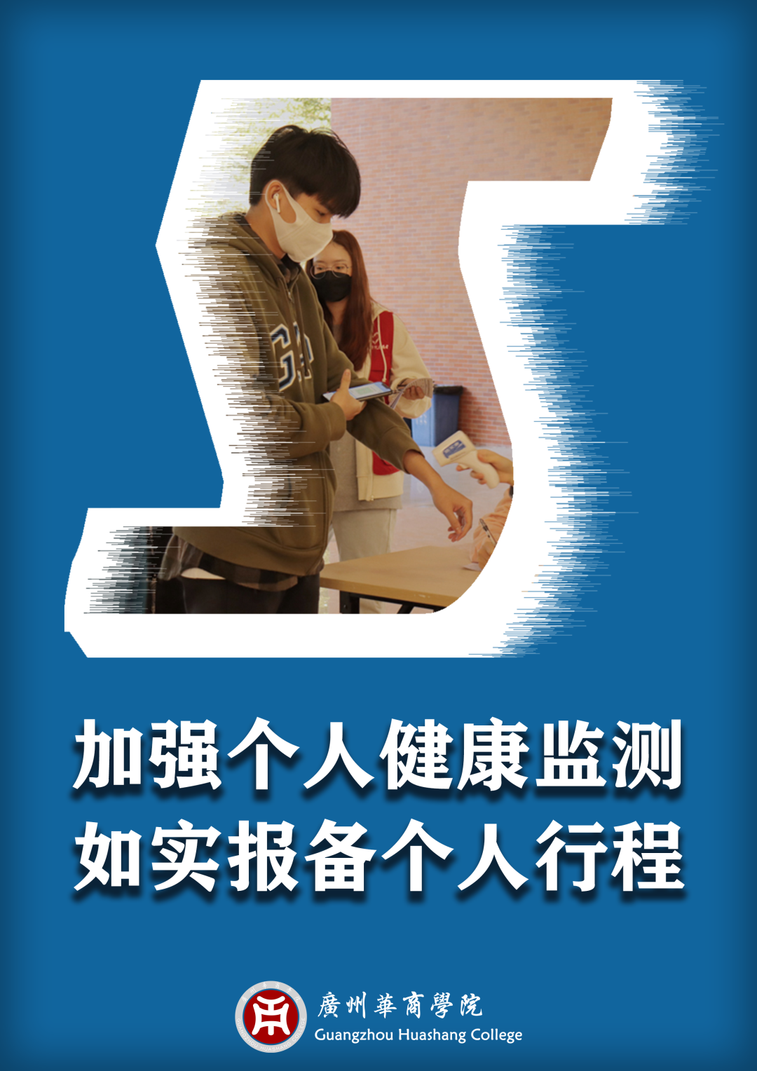 五、做好个人防护。接种新冠疫苗是预防新冠肺炎最有效的手段,全体师生员工应积极完成疫苗接种,构建人群免疫屏障。每个人都是自身健康的第一责任人,要时刻保持个人防护意识,正确规范佩戴口罩,保持勤洗手、常通风、少聚集、“一米线”安全社交距离、用公筷公勺等良好卫生习惯。