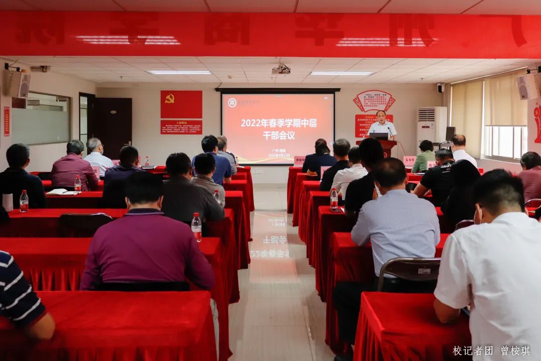 4月12日下午,我校召开2022年春季学期全校中层干部会议。会议在行政楼502设主会场,同时采取网络视频直播的形式设分会场。全体校领导以及各单位第一负责人主会场参会,全体中层干部参加线上视频会议。会议由支戈壁副校长主持。