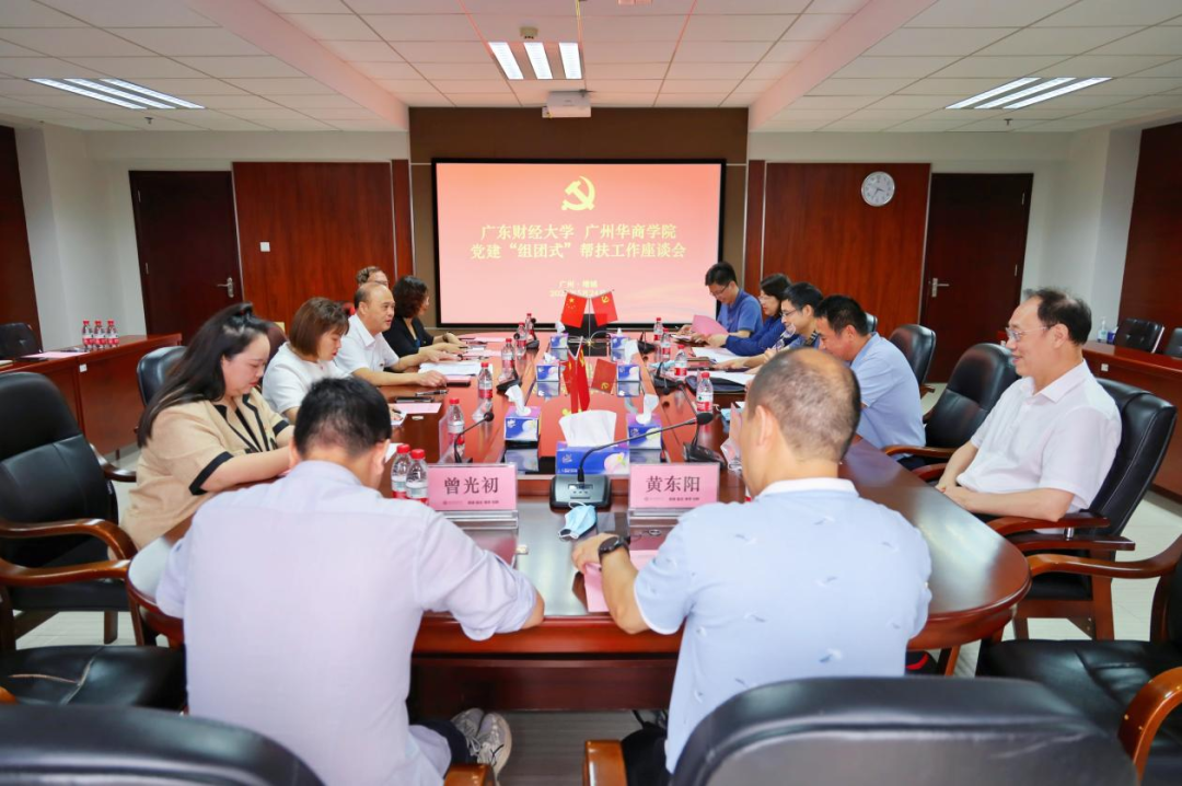 根据中共广东省委教育工委关于开展新一轮(2022-2024年)公办高校与民办高校党建“组团式”帮扶工作的通知精神。5月24日,在我校增城校区行政楼513会议室,广东财经大学帮扶工作组与我校开展党建“组团式”帮扶工作座谈会。两校紧扣共同目标,就党建工作情况,交流党建“组团式”帮扶工作意见,并部署下一步工作计划。广东财经大学党委常委、组织部部长郑金栈,党委常委、宣传部部长陈光团,机关党委专职副书记陈丽清,陈美华教授,组织部副部长刘文基,学工部副部长黄东阳,宣传部理论与思想政治科科长曾光初,我校党委书记苏宁,党委委员、校长助理、学工部部长许娜,党委委员、机关党委书记、党办主任吕书勉,党委宣传部部长、团委书记刘苗,马克思主义学院院长张荣国教授参加座谈。