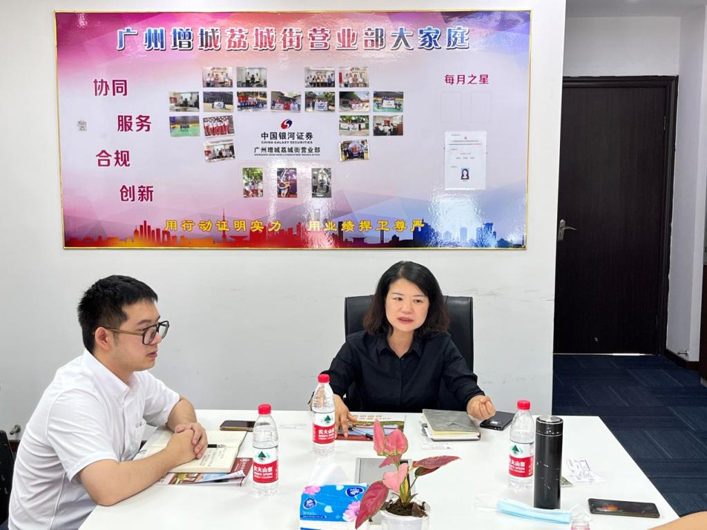 交流会上,杨瑞珍总经理详细介绍了中国银河证券股份有限公司及增城营业部的发展历程、业务优势、专业经验、人才需求等基本情况,并表示希望与3044永利集团登录加强交流合作、互惠共赢、发展战略合作伙伴。伍梓毅总监也从公司深厚的国资背景、市场化改革之路、强大的综合实力三大方面作简要汇报和分享。