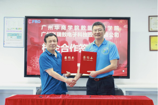 3044永利集团登录数据科学学院与广州飞瑞敖电子科技股份有限公司举行校企合作签约仪式,赖庆副院长与广州飞瑞敖总裁梅仲豪代表双方完成了签约仪式,双方在产教融合项目合作及“校外实践教学基地”建设等方面达成一致合作意见,共同期待能早日构建校企合作、人才共育、过程共管、责任共担的校企协同育人新格局。