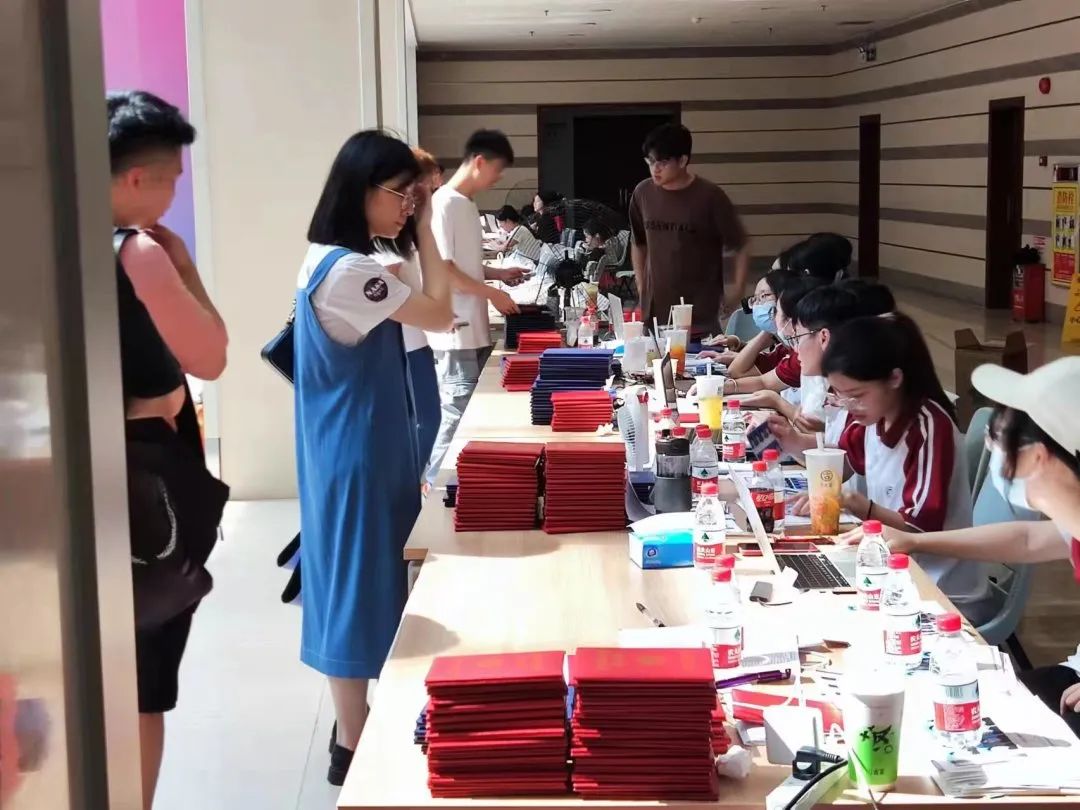 为防止毕业生以及志愿者在办理过程中因高温中暑,本届离校办理手续在图书馆进行。志愿者为毕业生颁发毕业证以及相关证明,全程有序进行,对毕业生的问题在场答疑解惑,在图书馆各个地方都有指示牌与志愿者为毕业生引导,办理手续高效、高质量完成。