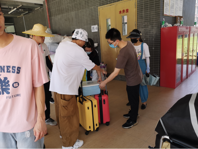 7月15日19时,经过三天无休整、高强度、全方位的加班加点,学校高度重视、各有关部门密切协作、管委会的统筹调度,全体行政教辅人员与辅导员、学生志愿者克服重重困难将5栋共10000余件行李分拣对应本部的15栋宿舍整装上车。高效协调下提前一天完成搬迁任务。