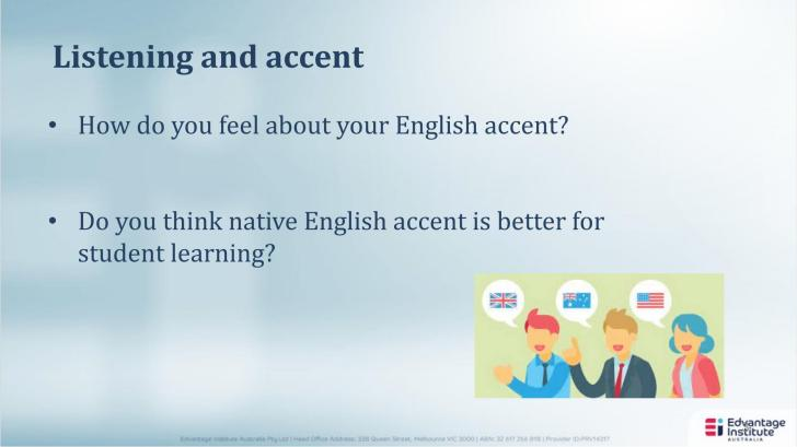 本期专项培训的主讲人是戴伟(David)博士, 第一场的主题是《语言转换双语(全英)教学对学生的影响》。戴伟博士通过介绍英语作为教学语言EMI(English as a Media of Instruction)对教学效果影响的研究;通过英语为母语和英语为非母语教师的教学作对比,分析了教师们的语音对学生学习的影响。他的研究显示英语作为授课语言时,学生更偏好熟悉的口音,这样可以降低他们的焦虑使学生能专注于专业内容的学习;口音不会对学生学习造成太大影响,相反在一定程度上能够促进学习。