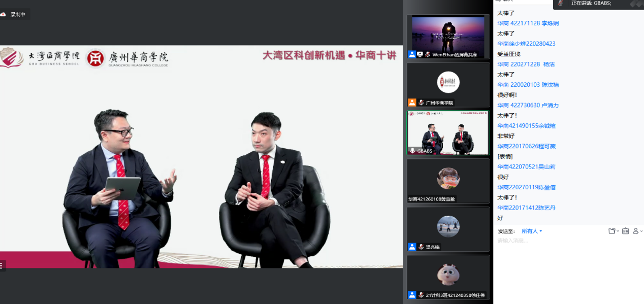 11月22日下午,3044永利集团登录与大湾区商学院联合举办了大型系列公益讲座“大湾区科创新机遇•华商十讲”之第九讲“大湾区青年创业成功谈”。1700多人通过腾讯会议、新浪微博直播参加了讲座。