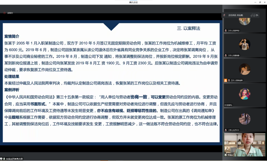 同时,她将法律知识和大学生常见法律问题紧密结合,把理论宣讲融入青年学生生活实际,帮助同学们更具象感知,在学习和工作中增强宪法意识,弘扬宪法精神。吴老师还抓住高校大学生等热点问题讲述案例,以通俗易懂、简单实用的语言解读现实典型案例及法律法条,以案释法、以法论事,为我校学生开展一堂生动的法制课。