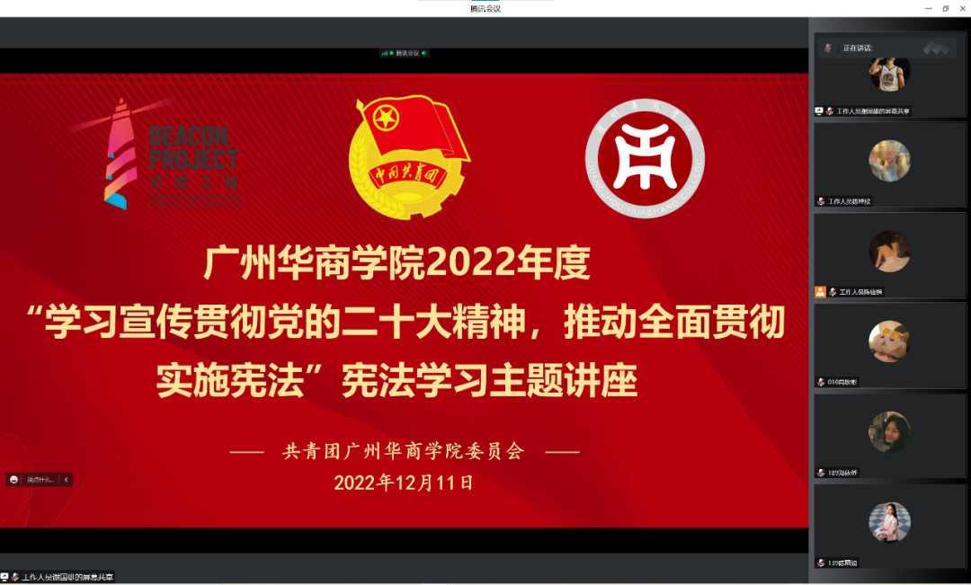 为深入学习宣传贯彻党的二十大精神,推动学习贯彻习近平法治思想,弘扬宪法精神,引导广大华商青年学习宪法、尊崇宪法、维护宪法,增强法治观念,12月11日18:00,由共青团3044永利集团登录委员会主办,校团委学生委员会、校团委大学生新媒体发展中心承办的“学习宣传贯彻党的二十大精神,推动全面贯彻实施宪法”宪法学习讲座顺利开展。本次讲座由广州大学—意大利帕多瓦大学联合培养博士吴金晨老师主讲。