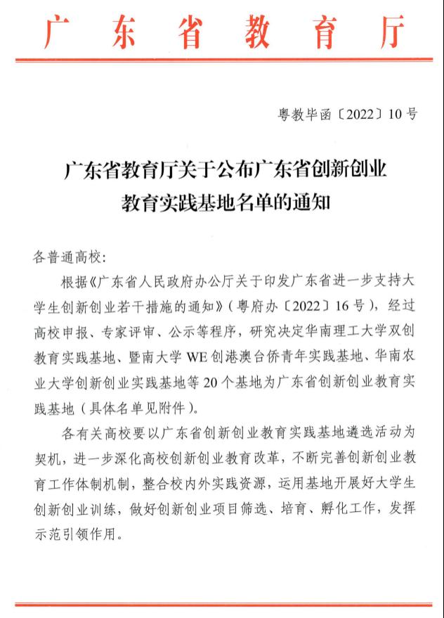 2.获批建设广东省创新创业教育实践基地