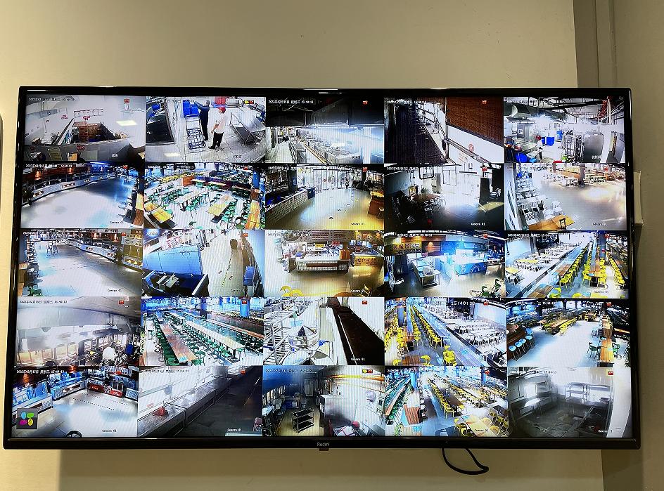 我校继续加快监管智慧赋能,实现“阳光”厨房监督管理,各食堂已安装明厨亮灶的设备设施,粗加工区、清洗区、切配区,烹饪区、配餐区……每一个操作专间都安装了监控摄像,进行操作流程 “直播”,食品加工各环节一目了然。