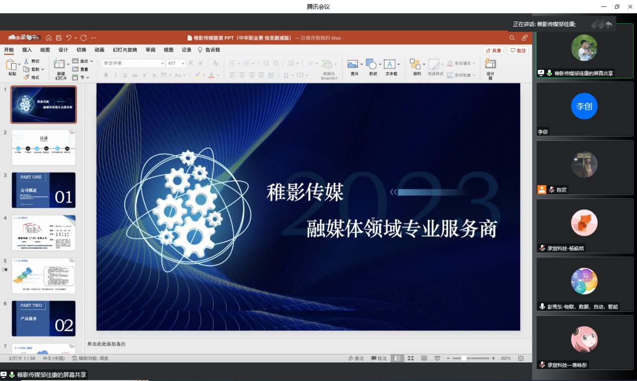 承宣科技和稚影传媒两支参赛队伍分别从项目背景、核心优势、商业模式等多个方面进行线上模拟路演。彭秀东教授认真听取两支参赛队伍的汇报,并指出问题,就项目的核心竞争力、路演的技巧、项目方案的呈现等方面对参赛团队提出具有指导性、针对性的优化建议,让两支参赛队伍团队获益颇丰。
