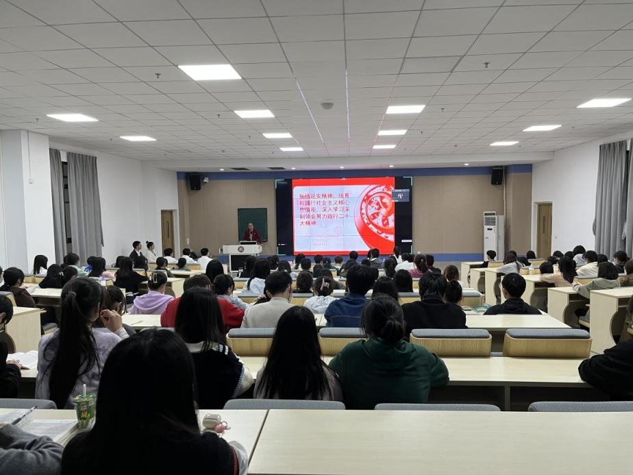 王卫平书记以《弘扬延安精神 培育和践行社会主义价值观 深入学习贯彻党的二十大精神》为题,从延安精神、如何培育和践行社会主义核心价值观以及深入学习、深刻领会践行党的二十大精神三个方面引导师生们不断了解和牢记历史,继承和弘扬党的优良传统。