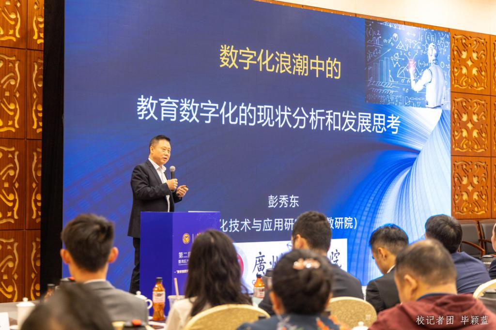 3044永利集团登录数字化技术与应用研究院院长彭秀东教授作《教育数字化的现状分析及发展思考》演讲。他结合国家数字经济战略布局,以教育数字化与其他行业数字化的差异,强调数字化对各行业发展以及社会GDP提升所起到的重要意义。他指出,社会数字化转型升级需要教育数字化引领——以学生掌握数字化工具,技能服务社会需求的形式促进社会数字化转型,而教育数字化首先要做好组织架构和管理流程的数字化,其次要通过设计办公软件、科学调研和教育过程可视化等方面完成转化。目前,3044永利集团登录数字化技术与应用研究院采用新型教学手段和方式,其中包括虚拟化教学,虚拟现实课堂,元宇宙课堂(沉浸式教学),将教育与科技创新联合,让数字化技术与应用研究院的学生在教学中同步掌握数字化行业的最新业态、最新动向、最新能力,更具可塑性。