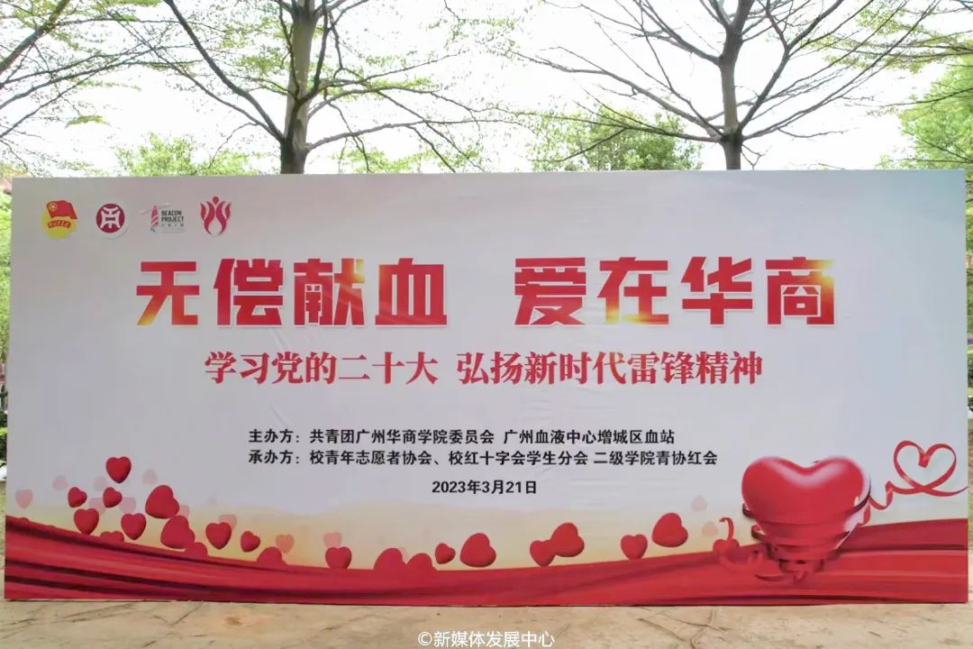 为学习贯彻党的二十大精神,落实习近平总书记对深入开展学雷锋活动作出的重要指示精神,宣传无偿献血的知识,倡导同学关爱社会,培育华商青年的生命意识、人道意识,提升同学们的道德修养,大力弘扬人道博爱奉献的红十字精神和“奉献、友爱、团结、互助”的志愿服务精神,在华商校园形成向上的正能量氛围。3月21日,在学校党委的领导,学校团委指导下,校青协红会在增城校区启智楼、四会校区六号楼,双城一心同步开展“无偿献血,爱在华商”无偿献血活动。