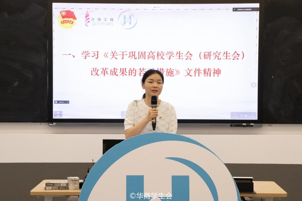 校学生会指导老师夏仲带领学生会工作人员共同学习《关于巩固高校学生会改革成果的若干措施》文件精神。夏仲老师从把牢政治方向、加强领导指导、当好桥梁纽带、抓实队伍建设、提升服务实效、创新组织模式、优化项目运行、强化考核评价、坚持从严治会、压实工作责任共十个方面对学生会重要文件进行解读。