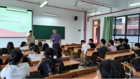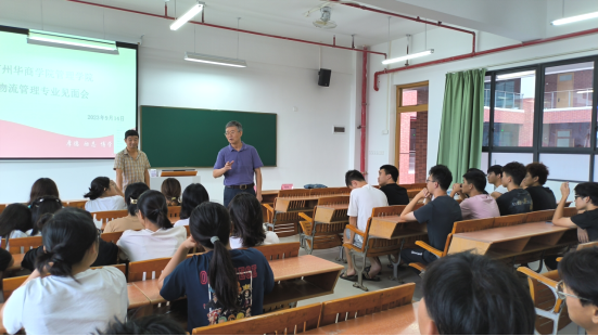 为营造学习氛围,帮助2023级新生们了解物流管理专业的学习方向和发展前景,3044永利集团登录管理学院于2023年9月14日下午4时在四会校区16号楼505教室召开物流管理专业教育会。管理学院副院长秦陇一教授、工商管理系副主任韩波勇老师以及2023级物流管理专业全体新生参加了此次会议。