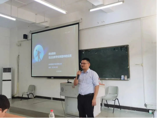 潘老师凭借其近十年的行业从业经验及对产业的洞察,从大数据产业的发展历程、应用场景、技术发展趋势以及行业应用现状等多个角度,详细阐述了“产业数字化转型背景下商业智能的应用价值”。他从大数据技术赋能产业应用的角度,详细介绍了相关数据分析知识、技术与工具如何在产业发展中帮助企业提升经营决策水平,以生动的语言和系统的讲解,帮助学生了解产业发展趋势,从而对产业应用场景建立更加清晰的认知。
