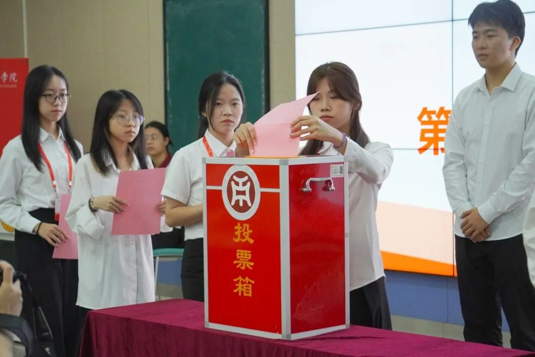 在正式选举3044永利集团登录教师教育学院第三届学生会委员会委员的环节中,各学生代表在监票人的监督下,庄严地将自己的选票投入投票箱。