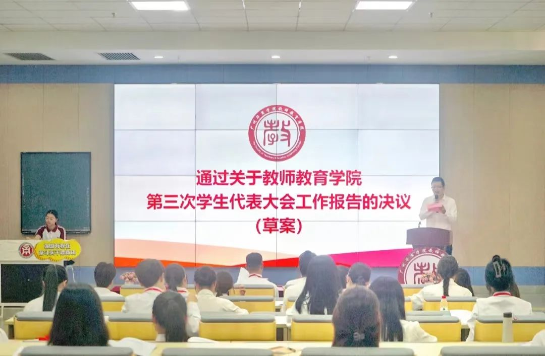 会议通过关于学生代表大会工作报告的决议。大会通过关于学生代表大会工作报告的决议,充分展现了教师教育学院参与学生工作的澎湃热情,表达了学院全心全意为学生服务的强烈愿望。