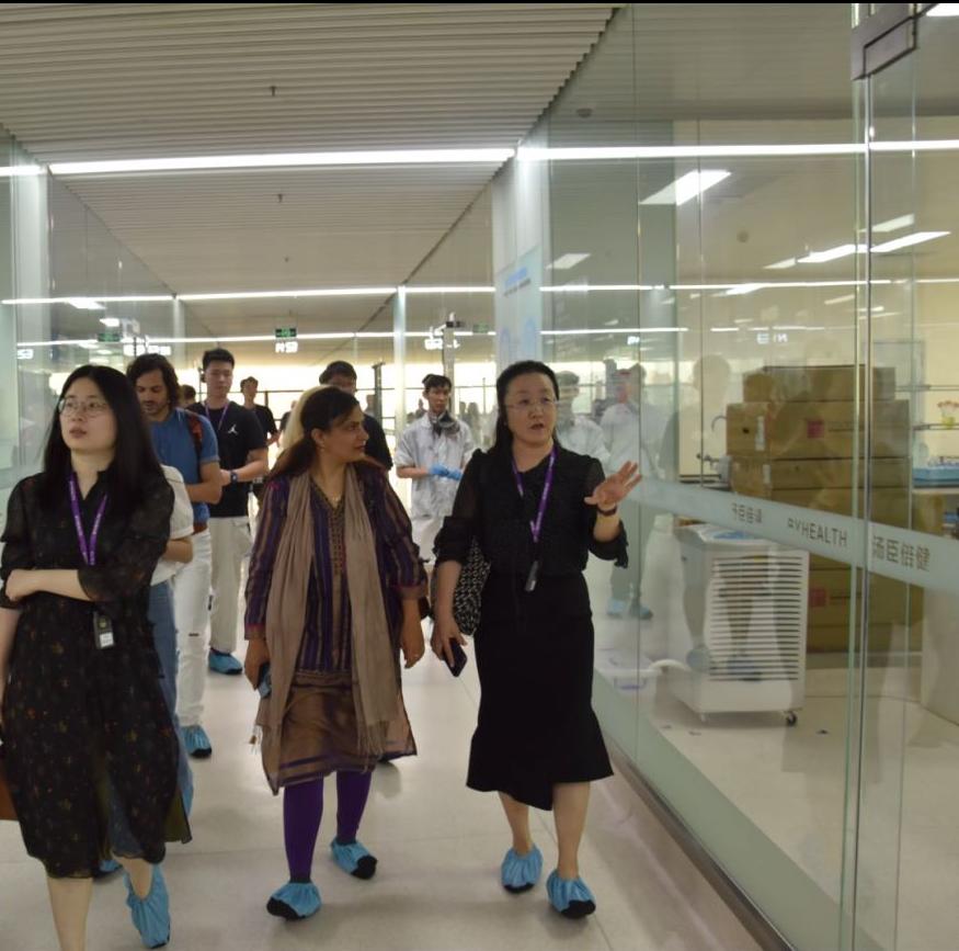 参访师生穿上防尘装备进入透明工厂的生产车间,深入了解口服固体片剂大规模连续生产和蛋白粉灌装无菌化连续生产过程。对于工厂的无尘生产环境、无人全自动设备的普及、精准的质量和数量控制,师生们不禁感叹新质生产力对工业的影响之巨大。