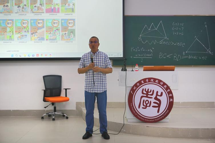 廖运章教授围绕《三角形三边关系》的课题,紧扣三角形三边的概念和三边之间的逻辑关系,讲解了如何研究教材,为上好一节课打下理论基础。他通过小学数学教材案例,展示了分析和研究教材的方式,并指出了教材编写中存在的逻辑关系混乱、定义不规范等问题。他鼓励同学们用批判性思维看待教材,调动自身发现问题的潜能,解决教学中的不足之处。