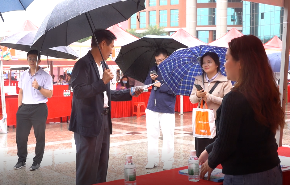 教师教育学院领导班子高度重视本次学校组织的招聘会,在王金道院长的带领下,教师教育学院领导班子、三办负责人以及辅导员到现场了解本次招聘会的开展情况。王院长一行先后到东莞启航教育、广州华星教育、深圳龙岗金翅膀教育等招聘摊位进行调研,了解用人单位的用人需求以及对教师教育学院的学生评价。