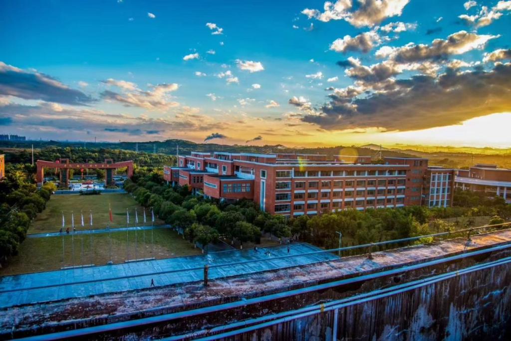 清晨时分,校友在校门迎接第一缕阳光,寓意新的起点,梦想启航。