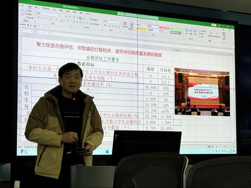 邱会锋副院长着重强调了合格评估工作中数据指标的关键意义,要求全院教职工精准把握。同时,他提出,本学期将加大力度指导学生发表论文,积极推动学生考取职业证书,全方位提升学生的专业实践能力。