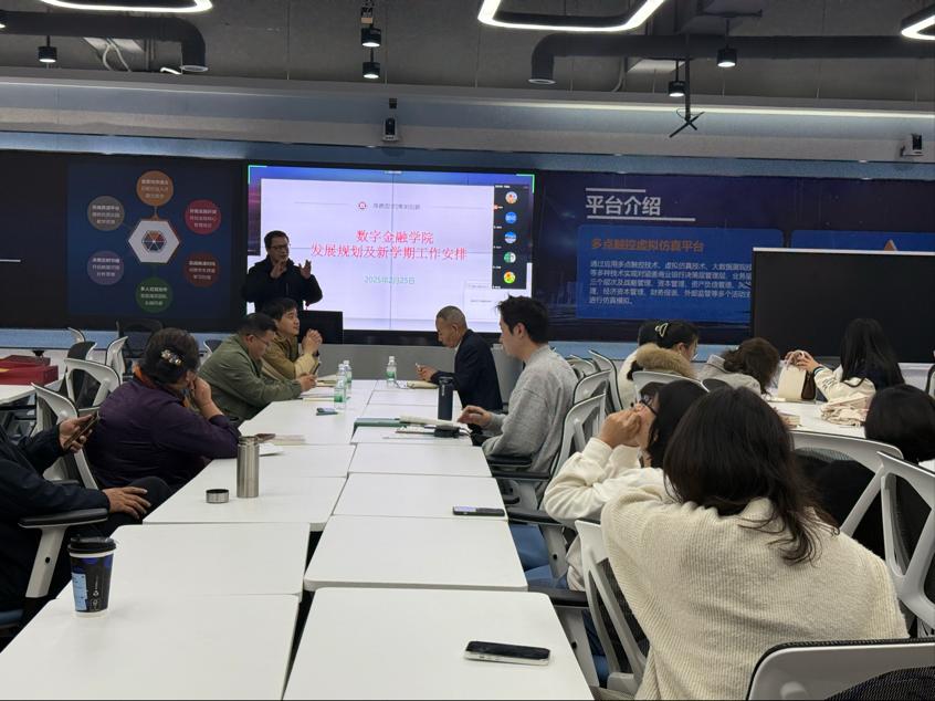 2025年2月25日下午,数字金融学院全体教师队伍在厚德楼C301会议室召开新学年工作安排与发展规划会议。会议由数字金融学院张纯威副院长主持,全院教职工齐聚一堂,共商学院发展大计。