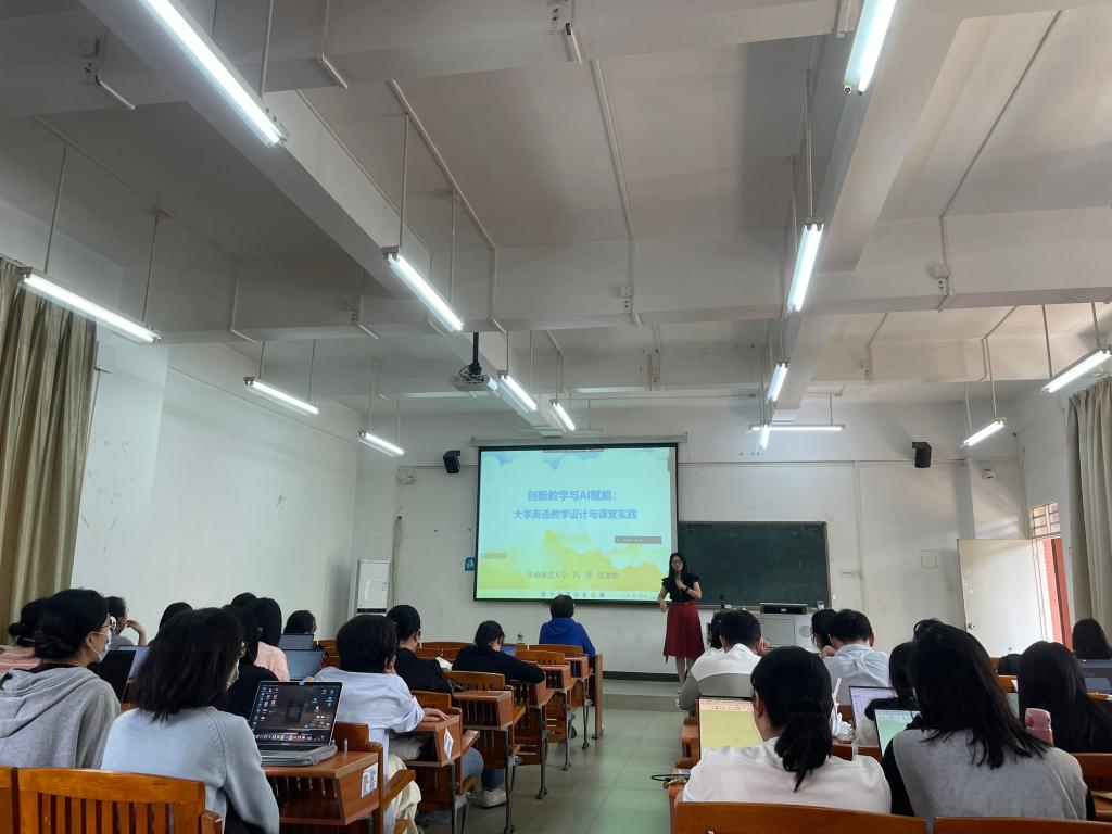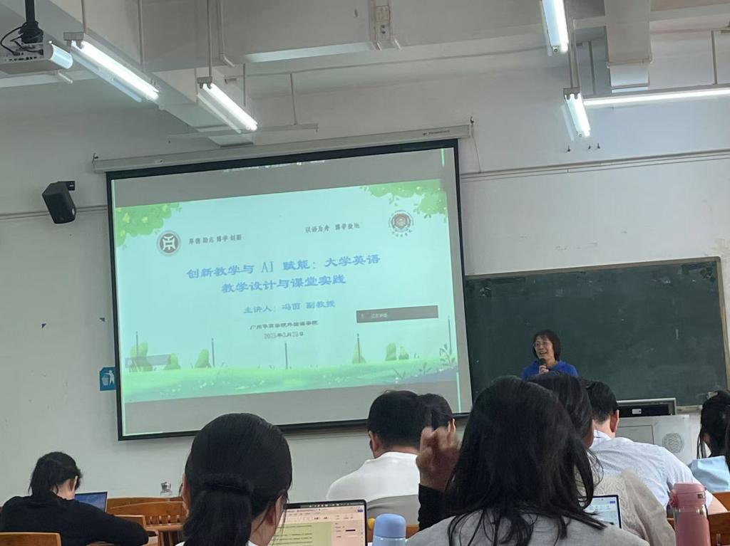 为积极响应学校第三阶段磨课通知精神,2025年3月25日下午,外国语学院在励志楼B402举办“创新教学与AI赋能:大学英语教学设计与课堂实践”主题讲座。外国语学院的专任教师们满怀热忱,共同聆听华南师范大学冯茵副教授带来的精彩讲座。讲座由外国语学院教学院长杜秀君教授主持。