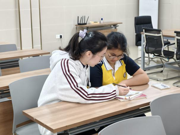 在作业辅导环节,志愿者们针对同学们在英语作业中所遇到的语法难点、词汇拼写等问题进行细致讲解。