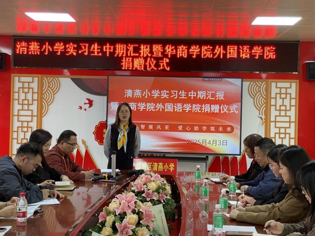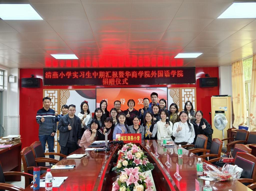 为感谢清燕小学对学生的悉心指导,外国语学院向清燕小学捐赠了物资。外国语学院代表表示,希望两校未来继续深化合作,为学生提供更多实习机会,助力学生成长。清燕小学对学院的捐赠表示衷心感谢,表示会充分利用这些资源,让学生受益。