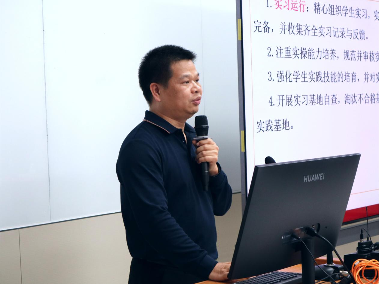 在互动交流环节,与会教师围绕教学大纲审核、实习基地管理、材料规范化等实际问题与鞠剑平教授展开了热烈的探讨。数学系主任石金诚老师针对课程及格率问题,向鞠教授请教解决方案。鞠教授建议,可通过分层次教学,满足不同学生的学习需求,同时提供针对性的说明材料,有效化解潜在风险。人工智能系主任霍永良老师关注信息化工具在评估材料整理中的应用,鞠教授分享了利用半自动化程序提高材料整理效率的经验。信息管理与信息系统系主任杨莉云老师就实习基地建设等问题与鞠教授进行了深入交流,双方共同探讨了如何进一步加强校企合作,提升实习基地建设质量。