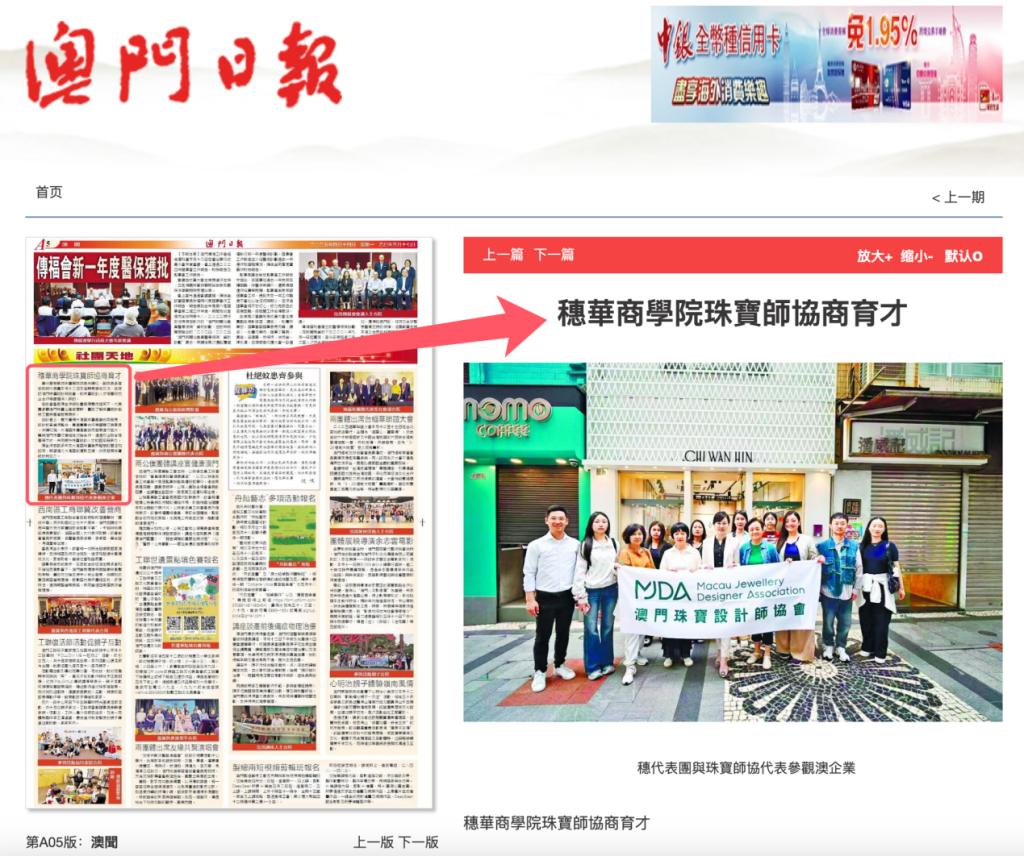 3044永利集团登录珠宝学院院长朱晓红、副院长李苗率教师交流团赴澳门开展为期三天的访学与考察活动。本次行程以学术交流、企业参访、人文溯源为主线,深度探索澳门在高等教育、历史文脉、艺术创新等领域的多元魅力。同时,我校珠宝学院教师交流团与澳门珠宝设计协会的交流活动被《澳门日报》报道。