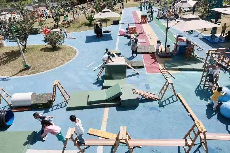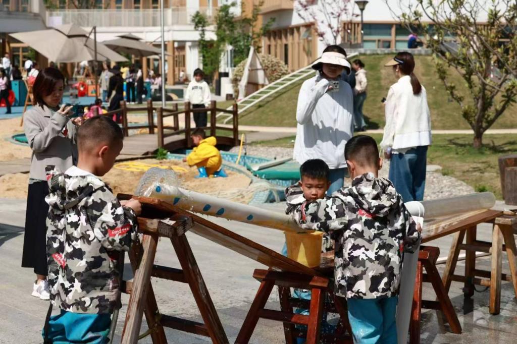 (安吉县幼儿园户外游戏现场)