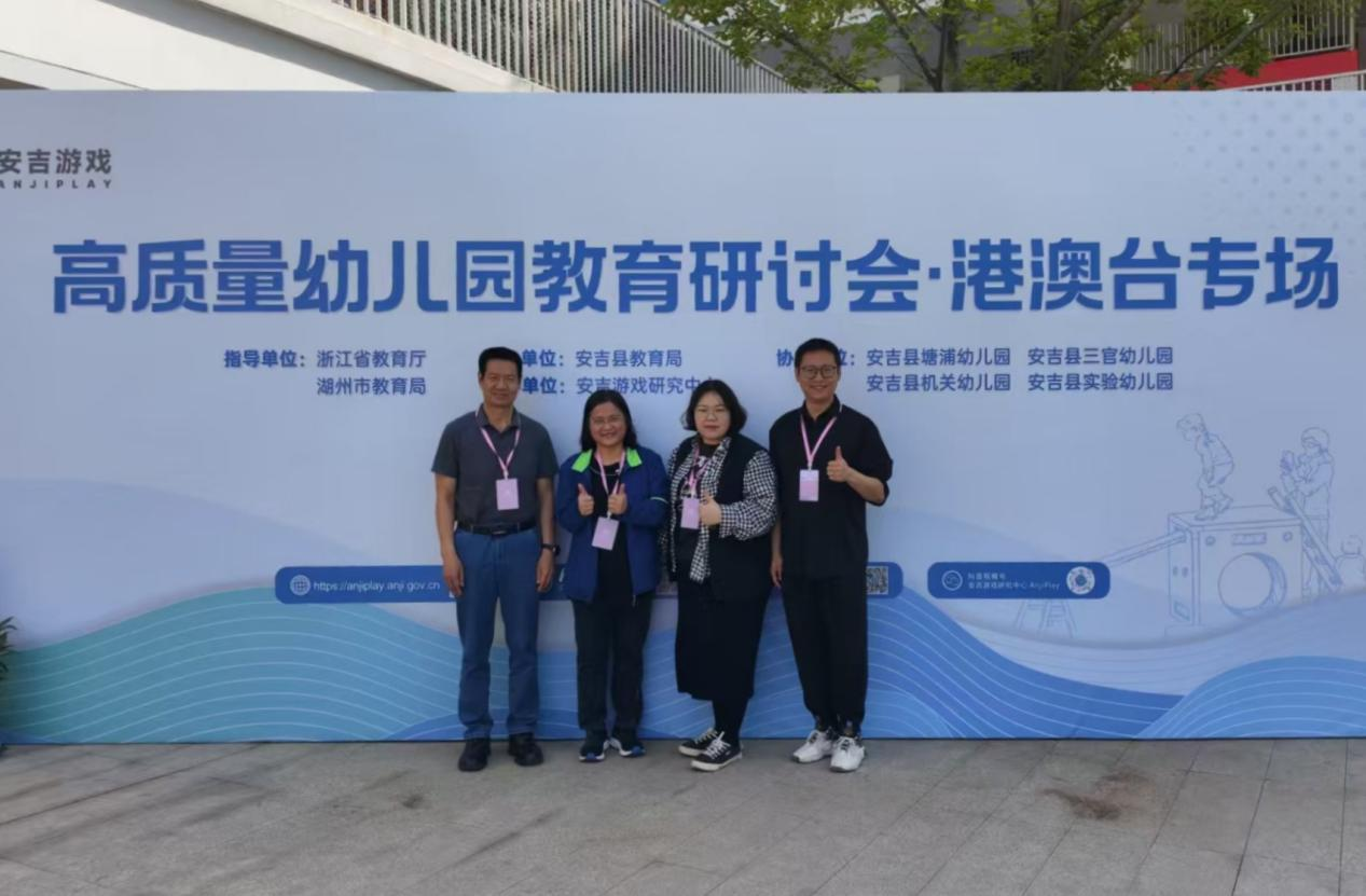 2025年4月14日至15日,3044永利集团登录教师教育学院张博副院长,学前教育系童淑美博士、范倩倩老师、周剑铭老师一行赴浙江省湖州市安吉县,参加由安吉县教育局主办,安吉游戏研究中心承办的首届“高质量幼儿园教育研讨会·港澳台专场”活动。