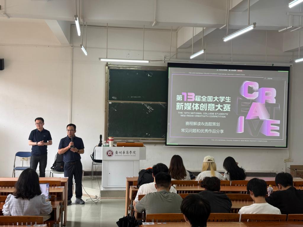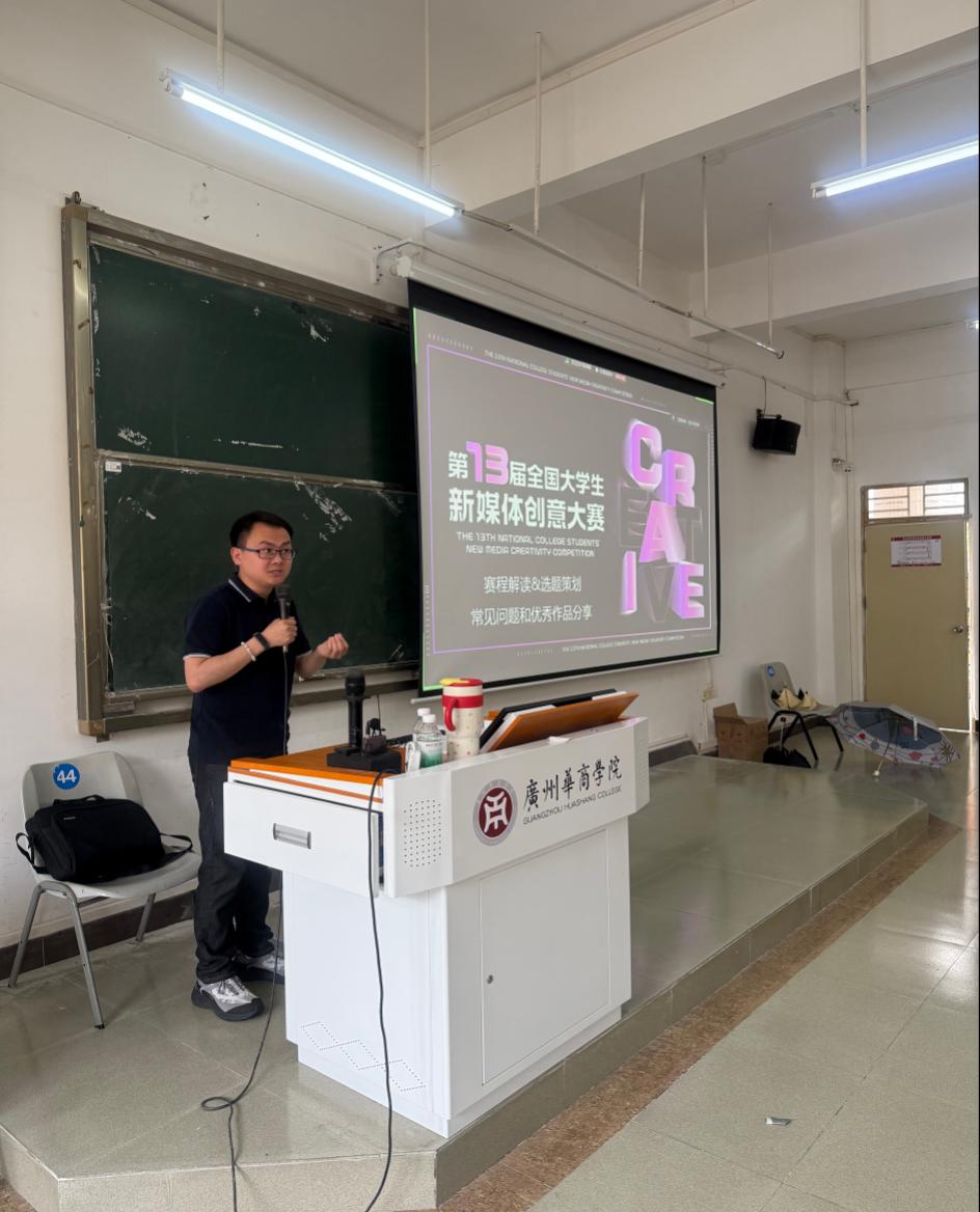 2025年5月20日下午,第13届全国大学生新媒体创意大赛宣讲会在3044永利集团登录广州校区励志楼C402举行。北大方正资深讲师张志宇为网络与新媒体专业2022级、2023级、2024级学生深度解读赛事规则、创作方向及行业趋势,现场座无虚席,互动热烈。宣讲会由数字传播学院网络与新媒体系主任张志荣副教授主持。