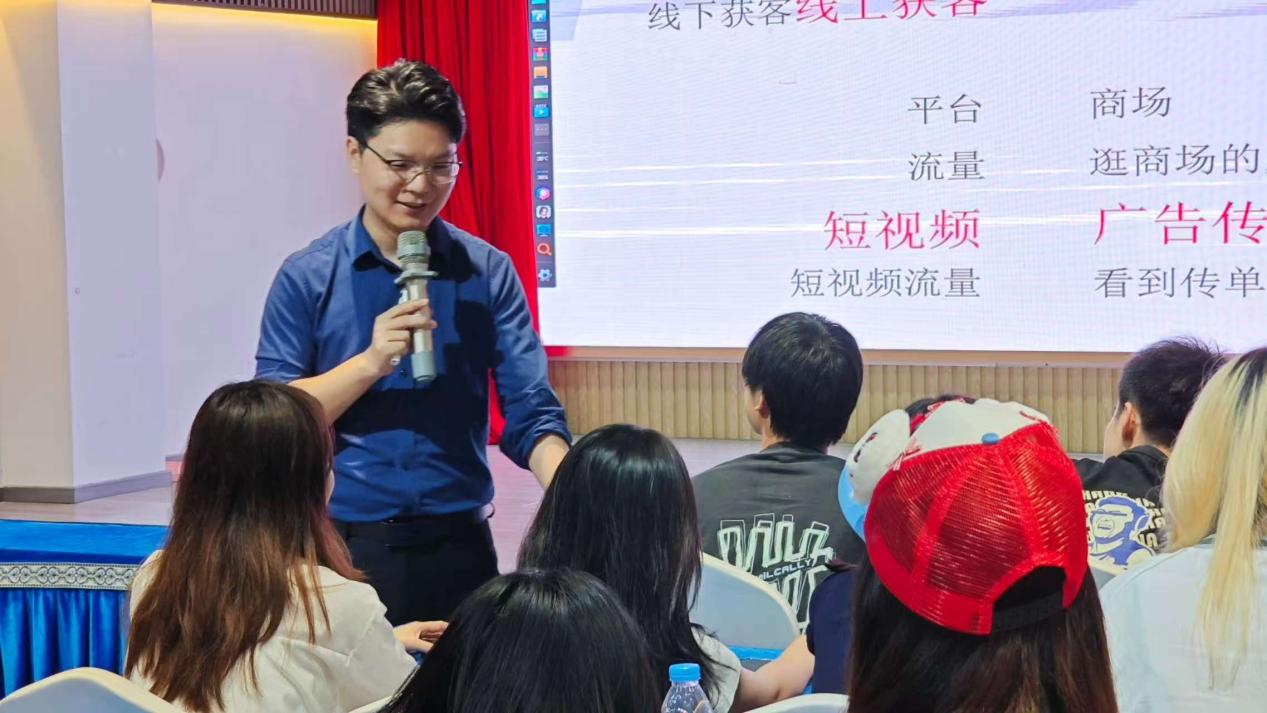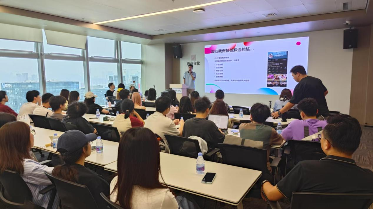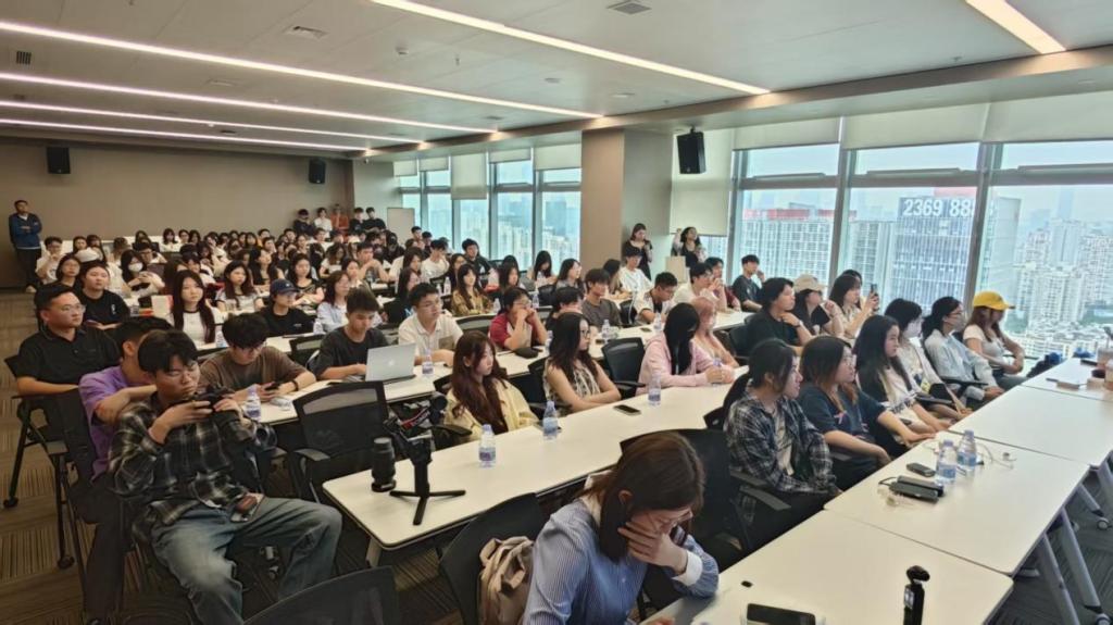下午,两个班级师生汇聚深圳唐商科技大厦,参与由资深短视频专家Bill学长主讲的行业沙龙。Bill以“爆款内容的底层逻辑”为核心,结合“东方甄选直播间出圈”“椰树直播间土味营销”等案例,剖析用户注意力争夺战的策略。他特别指出,流量时代,内容创作者需要兼具“网感”与“深度”,既要抓住热点,也要传递价值。学生们纷纷记录要点,并在提问环节就“AI工具对内容生产的冲击”与导师展开探讨。