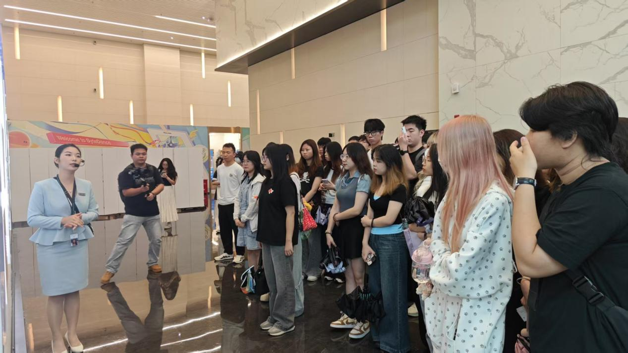 活动首日,师生分别赴深圳两大企业展开深度参访。同学们走进全球互联网巨头字节跳动公司,在体验中心近距离观摩抖音、剪映等产品的技术后台与运营逻辑。通过企业导师的讲解,学生们了解到“算法推荐如何精准触达用户”“短视频内容如何兼顾创意与传播效率”等核心问题。一位同学感慨,原来爆款视频的背后是数据驱动与用户心理的双重博弈,这让我们对内容生产有了更理性的思考。
